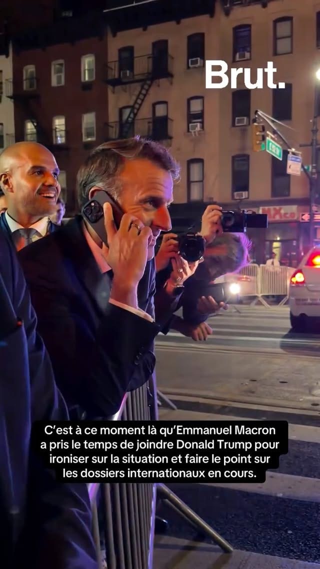 Because Macron had to walk across New York for 30 minutes, the extended footage by journalist Remy Bruisine shows an unlikely scene: the French President being kissed on the head by a passerby, which Macron handled very graciously, pacifying his bodyguards who were ready to intervene. I can’t help but wonder what would have happened had Trump being the one held in Paris by Macron, made to walk for 30 minutes, and touched by a stranger. Better live with the doubt. It could have been the inciting incident of WWIII.